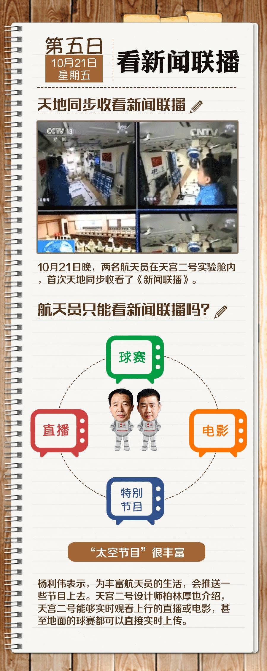 从17日到23日,景海鹏、陈冬已经在太空生活了一周多。这一周多来,只有“天”知道他们在这一周经历了什么,你想知道吗?