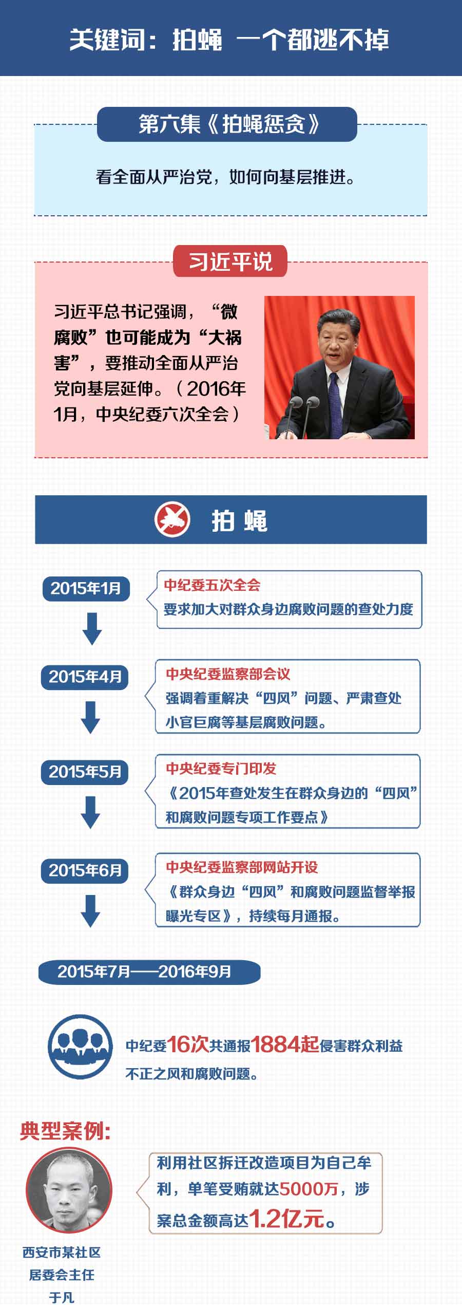 第六集《拍蝇惩贪》呈现的是中央如何加大力度整治群众身边的“蝇贪”。