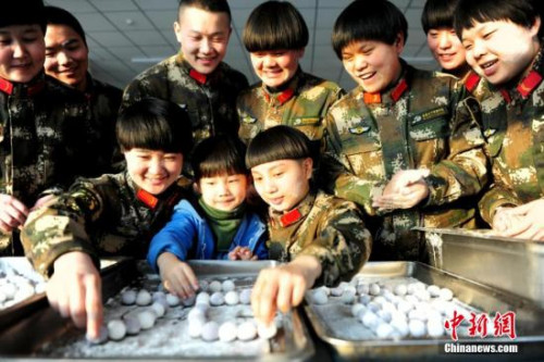 资料图。新疆留守儿童进警营闹元宵。范昕羽 摄