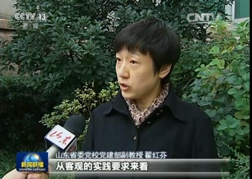 山东省委党校党建部副教授翟红芬:从客观的实践要求来看,我们现在处在新的形势下,我们的党处在新的历史方位当中,我们要去进行具有新的历史特点的伟大斗争,这就从客观上要求我们有一个坚强的领导核心,六中全会第一次正式提出了以习近平同志为核心的党中央,这是历史的必然的。