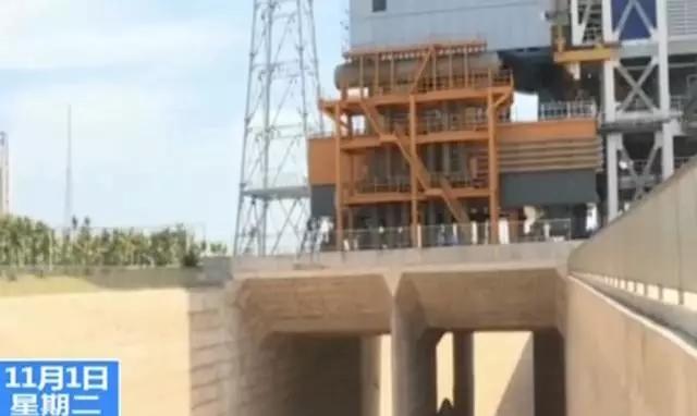 发射塔架的前方地面以下部分是导流槽,用来导排火箭点火时产生的巨大热能。这是我国目前最大的一个导流槽,为双向四通道结构,采用了白刚玉耐烧蚀混凝土,大大提升了可耐受温度。目前,长征五号火箭已经完成了技术期的所有测试项目,正在进行加注发射前的准备工作。