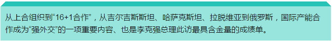 两年前,李克强与哈萨克斯坦总统纳扎尔巴耶夫会谈,两位领导人将中国优势产能与哈国基础设施需求对接达成“中哈产能合作”计划,由此大大丰富了‘丝绸之路经济带’建设和哈萨克斯坦‘光明之路’新经济政策对接合作的内涵,——这也是国际产能合作概念和外交实践的肇始。难怪有人说,如果一定要在李克强经济外交名片上印什么头衔的话,那么可以印上“国际产能合作的推动者”。