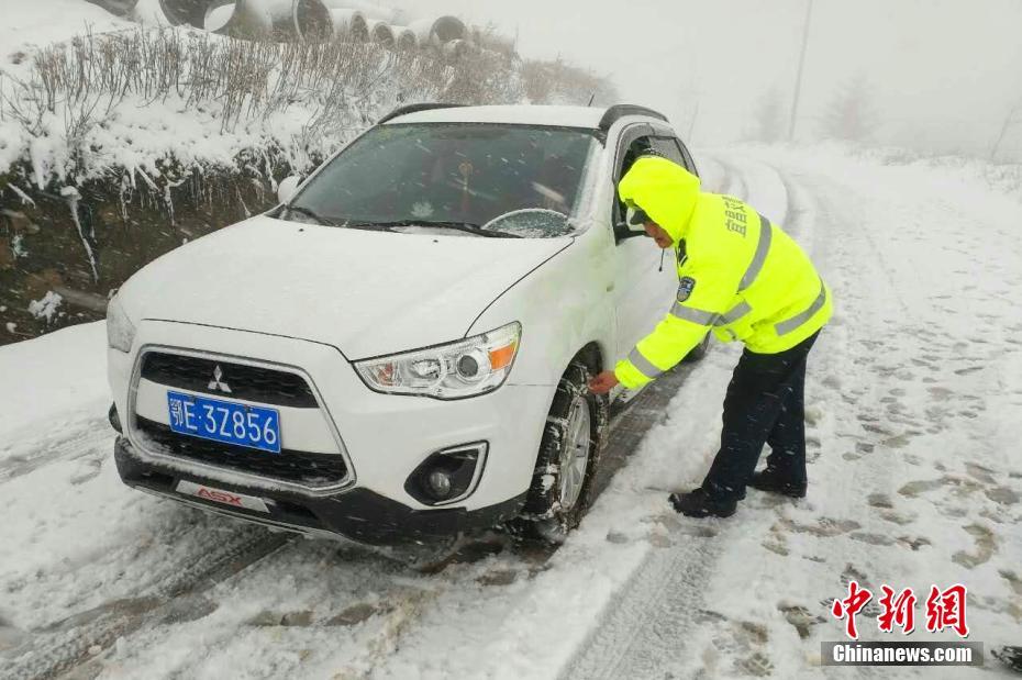 11月8日,受寒潮降温影响,湖北鹤峰中营镇、长阳火烧坪等鄂西山区迎来强降雪。降雪从7日晚11时许开始,截至目前,海拔1680米的鹤峰县中营镇路面积雪厚度最高达5厘米,而平均海拔1800米的长阳火烧坪路段道路积雪达到20厘米。为全力确保雨雪天气交通安全畅通,鹤峰、长阳两地交警全员上路执勤排险,指挥来往驾驶员谨慎驾驶,确保安全。姚宏忠 摄