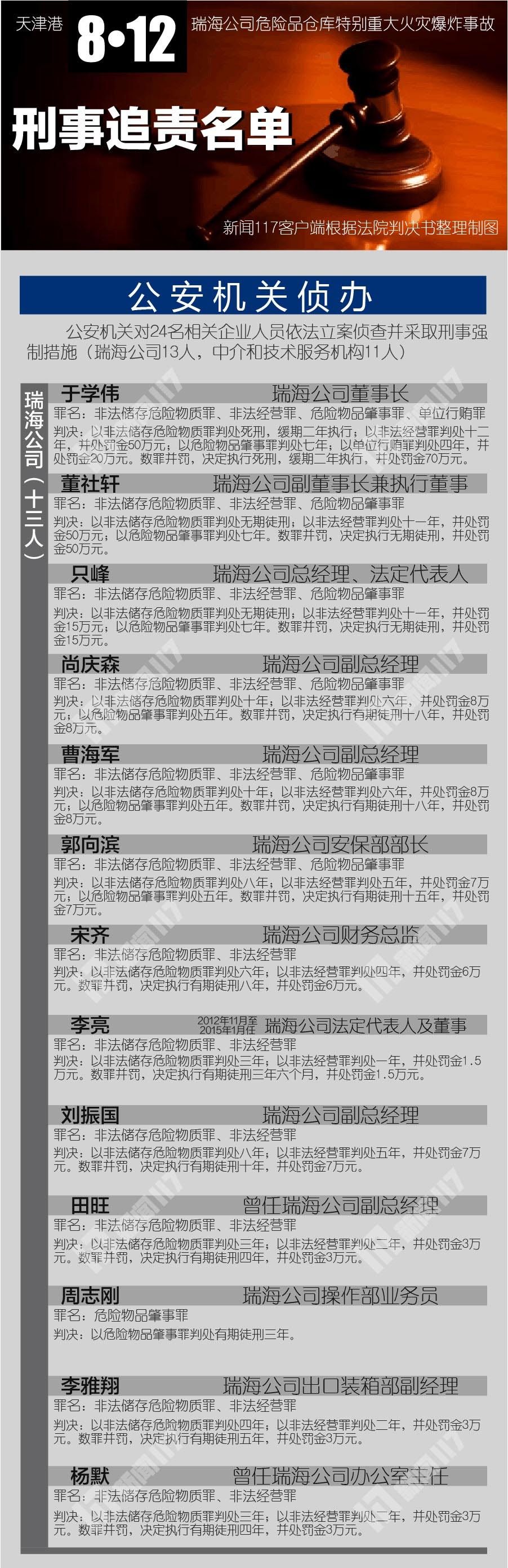 瑞海公司副董事长董社轩、总经理只峰,构成非法储存危险物质罪、非法经营罪、危险物品肇事罪,数罪并罚,均被判处无期徒刑;