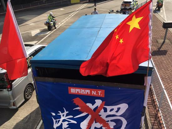 全国人大常委会就基本法104条释法,得到香港社会各界支持。今天(12日),香港新界的各界人士举行了“反辱华、反港独、反暴力、撑释法”的汽车游行。