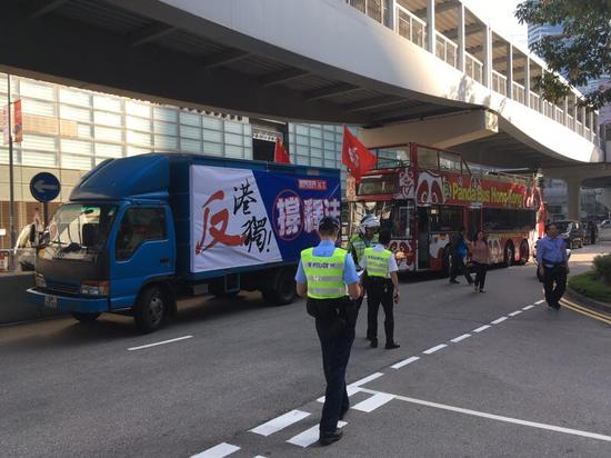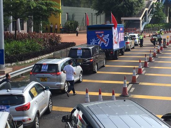 许多市民自发地将私家车开到集合点,将“撑释法、反港独”的标语贴到车上,来表达“支持释法,反对辱华及港独、反对任何人使用违法方式破坏社会秩序”的心愿。