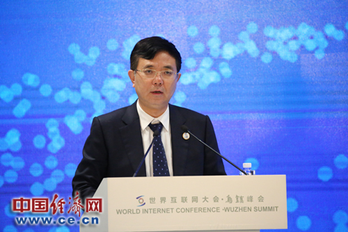 第三届世界互联网大会11月16日在乌镇开幕,大会除了开幕式、闭幕式以外,设置了16场论坛、20个议题。图为中央政府驻澳门特别行政区联络办公室副主任薛晓峰在由经济日报社、旺旺中时媒体集团、凤凰卫视、澳门日报社联合主办,中国经济网、工商时报(台湾)承办的“海峡两岸暨香港、澳门互联网发展论坛”上发言。中国经济网记者 裴小阁/摄