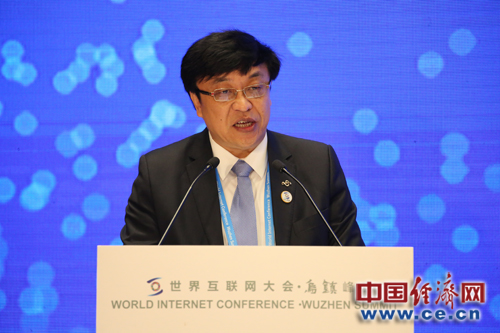 第三届世界互联网大会11月16日在乌镇开幕,大会除了开幕式、闭幕式以外,设置了16场论坛、20个议题。图为浙江省人民政府副省长冯飞在共青团中央和全国青联主办的互联网青年论坛上发言。中国经济网记者 裴小阁/摄