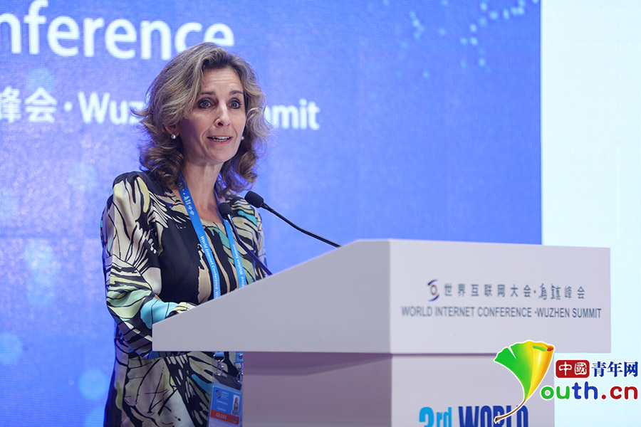 西班牙电信数字化教育公司首席执行官卡罗琳娜发言。中国青年网记者 张炎良 摄