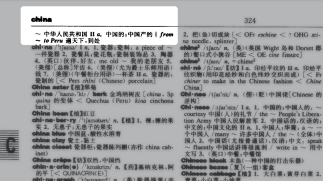 央视新闻客户端在查阅《英汉大辞典》(陆谷孙主编2007年第2版)时,于第324页发现在China“中国”词条下,列出了“from China to Peru”,其中文解释为“遍天下,到处”。