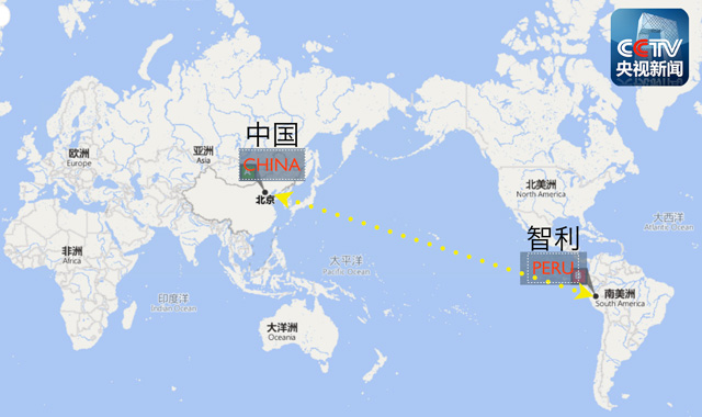 中国与秘鲁的确相隔万里之遥,数据显示,中国距离秘鲁的距离是17049公里,空中飞行距离为10594公里。北京与秘鲁首都利马有13小时的时差。