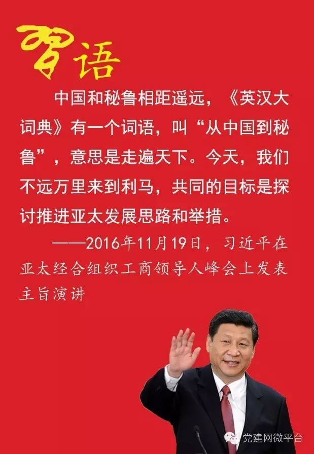 ——2016年11月19日,习近平在秘鲁利马出席亚太经合组织工商领导人峰会并发表题为《深化伙伴关系 增强发展动力》的主旨演讲