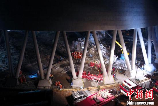 11月24日晚,搜救人员正在现场对失联人员进行搜救。当天上午7时30分许,江西省宜春丰城电厂三期扩建工程D标段冷却塔平桥吊倒塌,造成模板混凝土通道坍塌。