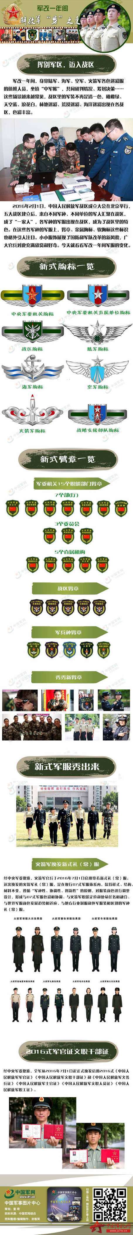 在这些各军种的军服上,臂章、金属胸标、软胸标这些标识也格外引人注目。小小服饰展现了国防和军队改革的新风貌,广大官兵对此充满欣赏和好奇。今天就看看军改一年间解放军军服的变化。