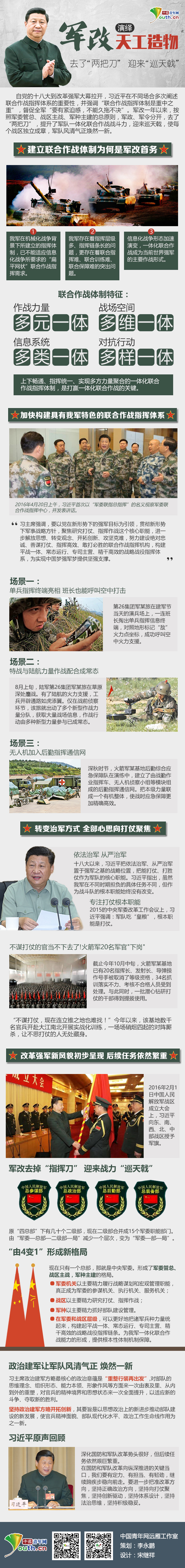中国青年网北京11月30日电(记者 李永鹏) 自党的十八大到改革强军大幕拉开,习近平在不同场合多次阐述联合作战指挥体系的重要性,并强调“联合作战指挥体制是重中之重”,督促全军“要有紧迫感,不能久拖不决”。军改一年以来,按照军委管总、战区主战、军种主建的总原则,军政、军令分开,去了“两把刀”,提升了军队一体化联合作战战斗力,迎来巡天戟,使每个战区独立成章,军队风清气正焕然一新。