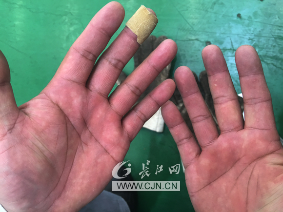 当我问道手上的创口贴时,周虎笑着说,好的钳工都不能戴手套,特别是在检验设备时,看看设备的接口处有无毛刺,所以手也会经常受伤,旧伤未好新伤就来了,如果接口有毛刺,戴着手套是根本无法检测的。
