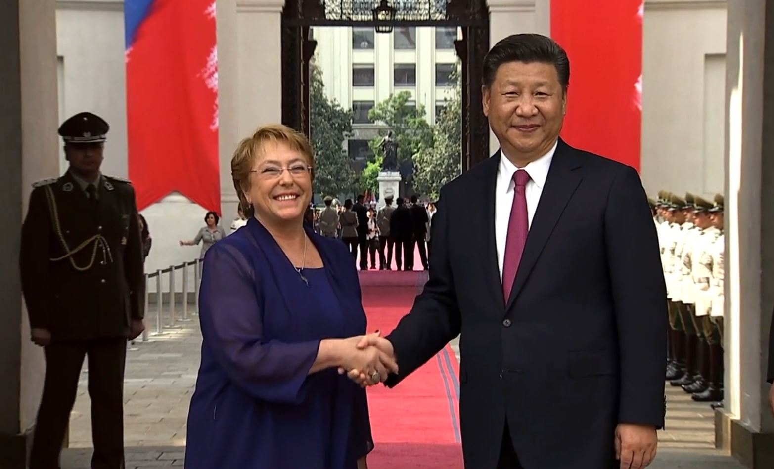 当地时间11月22日16:30 习近平出席智利总统巴切莱特举行的欢迎仪式