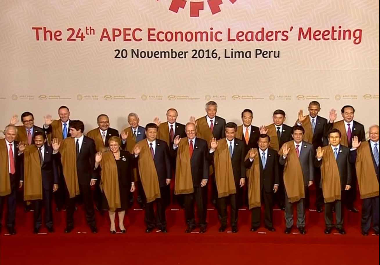 APEC峰会领导人身披秘鲁特色披肩 集体拍摄“全家福”