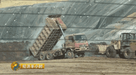村民告诉记者,自从山西华兴铝业公司来到这里,除了排放污水毁掉了眼前的岚漪河,企业用烧碱提炼氧化铝后,产生大量的赤泥等废渣、废弃物,也是村民们无法忍受的另一种污染。在当地村民的带领下,记者沿着厂区后面的盘山公路走了2公里多,来到堆放赤泥的露天库。记者在现场看到,一大片山谷中,一辆辆大货车,正拉着还冒热气的赤泥,往外倾倒。村民告诉记者,赤泥一旦填埋,土地就算彻底废弃,因为腐蚀性极强,庄稼根本种不起来。