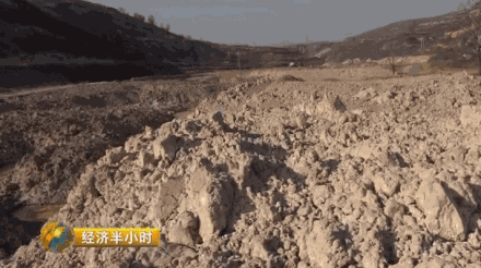 央视财经《经济半小时》记者:这就是网上视频的现场,我们可以看到这个排水管道,直径大概是一米多,而下面有一股,带有黄颜色的污水,源源不断地排放出来。这个地方是带有黄褐色和白色的残留物,据村民介绍,这个残留物有非常强的腐蚀,不能用手和皮肤直接接触,而对面一百米远的地方,就是王家峁村。