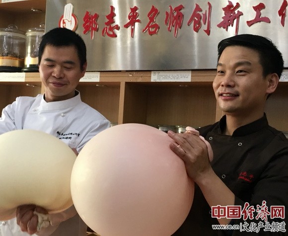 邹志平师徒一起吹面球 中国经济网记者魏金金/摄