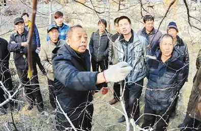 李保国在河北省内丘县岗底村向村民讲解果树修剪知识。新华社记者 朱旭东摄