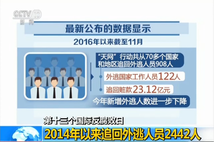 从今年的数据来看,截至11月,“天网”行动共从70多个国家和地区追回外逃人员908人,其中外逃国家工作人员122人,追回赃款23.12亿元。今年新增外逃人数进一步下降。