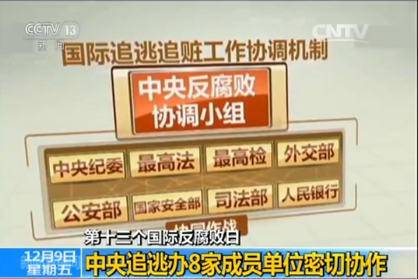 中央追逃办8家成员单位密切协作 中纪委负责协调统筹