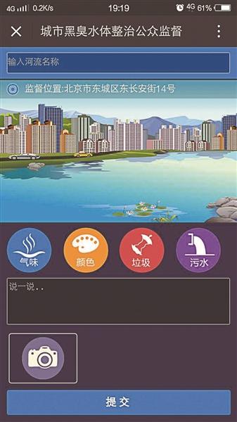 而由环保部和住建部联合创建的微信公众号“城市水环境公众参与”,除了设置有监督举报黑臭水体的功能,还可通过微信进行自动定位,工作人员可根据举报位置迅速来现场调查。