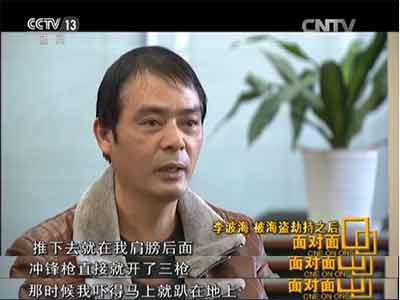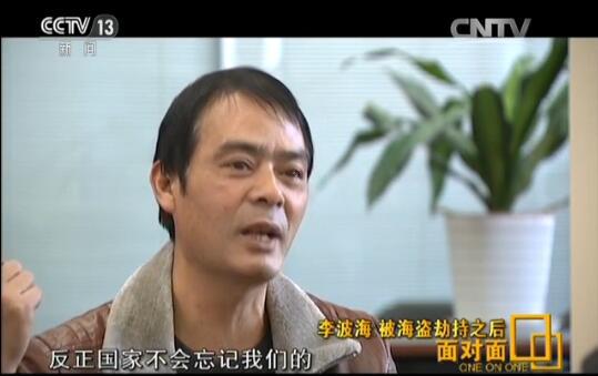 李波海:那时候以为肯定要去枪毙了,肯定要被海盗拉去枪毙了,电视上面看过一些,海盗杀人的时候,要把人质的眼睛都蒙起来对不对,那时候害怕得要命,真是害怕死了,他把我推下去,推到驾驶台下面,他把我推下来,把我押下去,我两只手被绑住了,旁边声音也没有,那时候真的是很害怕很害怕。