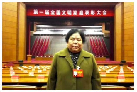 这位老人名叫余洪芝,是来自湖北武汉的文明家庭代表。