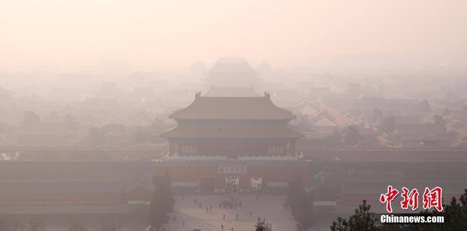 12月18日,雾霾中的紫禁城。从12月16日开始,北京遭遇今冬以来最严重的区域性空气重污染过程,预计持续时间超过5天。对此,北京市空气重污染应急指挥部于12月15日提前发布今年首个空气重污染红色预警,12月16日20时启动各项应急措施,其中包括机动车单双号行驶(电动车除外)、中小学及幼儿园采取弹性教学或停课等。中新社记者韩海丹 摄