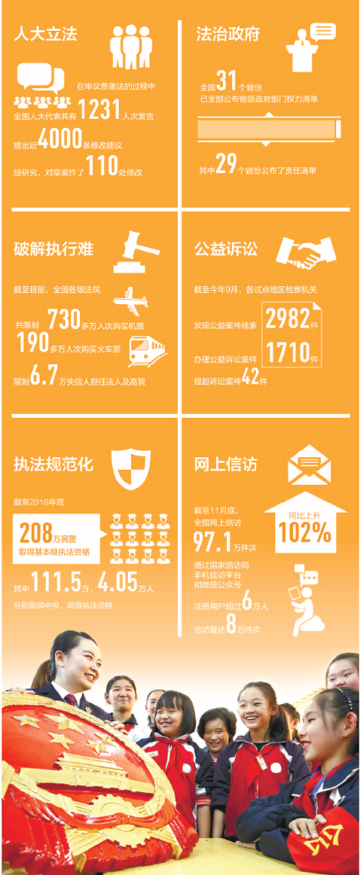 2016年,一共有35部法律获得通过,其中修改25部,新制定10部。人民群众的关切和期待在哪里,立法修法的关注点就在哪里。立法机关努力使每一项立法都能成为一道保护人民群众合法利益的重要力量。