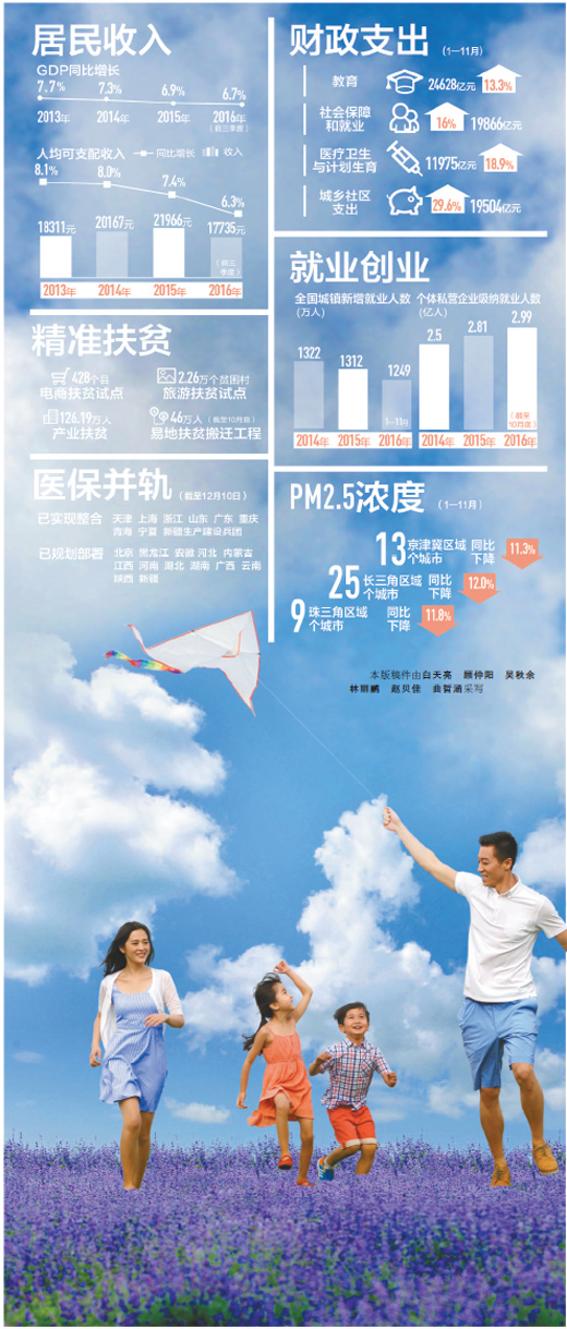 今年1至11月,全国一般公共预算收入148250亿元,同比增长5.7%,增速放缓。不过,给群众办的好事实事一件接一件,一笔笔真金白银按时拨向民生工程,主要民生领域财政支出均同比增长13%以上。另外,政府压缩一般性支出,提高国有资本收益上缴公共财政比例并更多用于改善民生,把财富蛋糕“大头”分给百姓。时近岁末,千家万户感受到“民生清单”的厚重温暖。