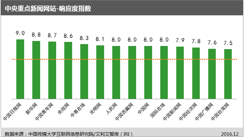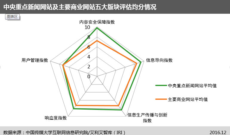 信息生产传播与创新方面、信息导向以及内容安全保障方面,中央重点新闻网站表现较好,各网站之间差异不大;用户管理、响应度方面,整体仍还需要加强。