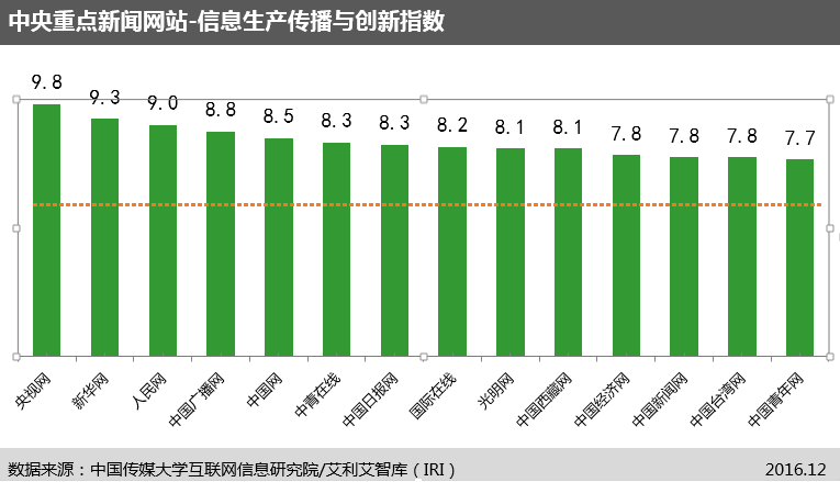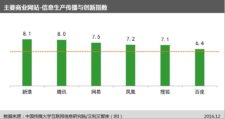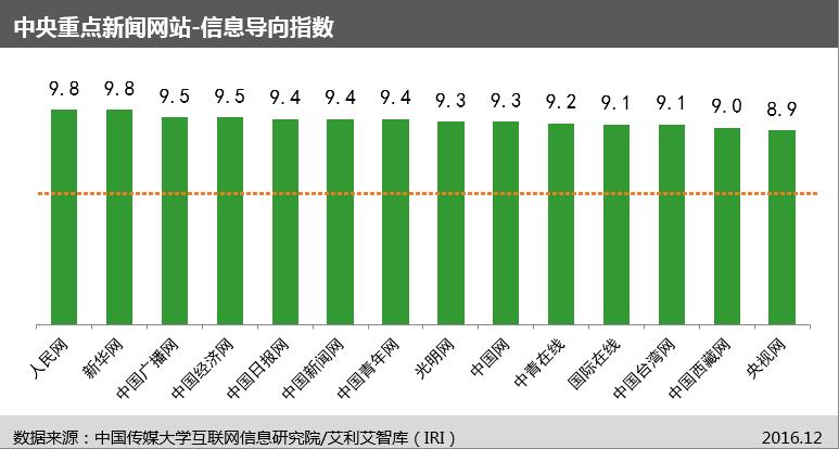 论坛上,研究院亦发布了2016年12月份的《国内主要新闻网站信息生态首期评估报告》,报告的测评范围包括国内14家中央重点新闻网站、6家主要商业新闻网站。具体呈现以下特点: