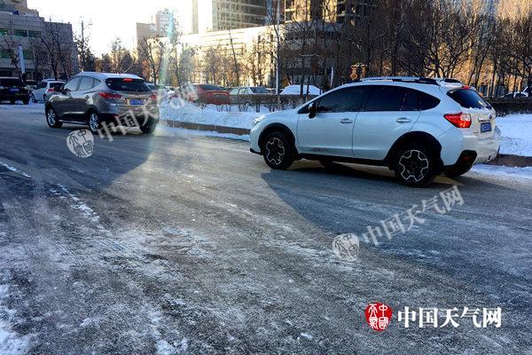 1月9日,辽宁抚顺天气寒冷,出现道路结冰。