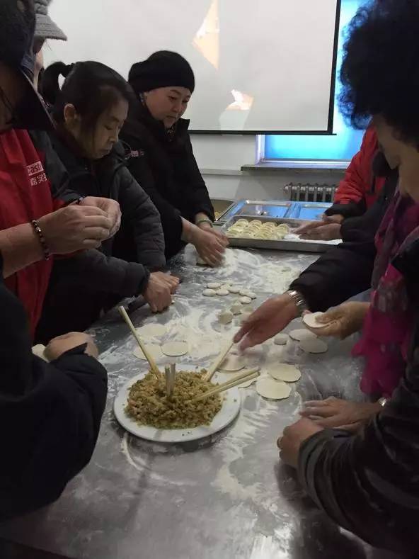 走访当日,社区年会,正在包饺子