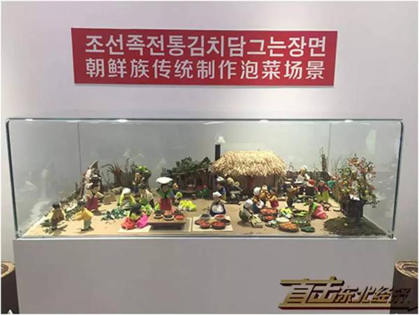 △金刚山食品股份有限公司展厅里陈列着朝鲜族传统制作泡菜场景