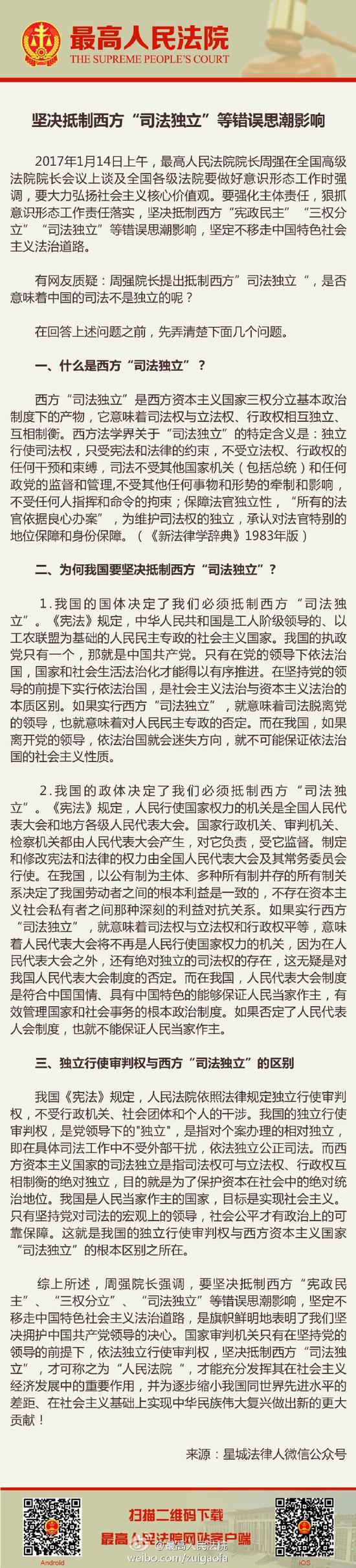 [坚决抵制西方“司法独立”等错误思潮影响]坚决抵制西方“宪政民主”、“三权分立”、“司法独立”等错误思潮影响,坚定不移走中国特色社会主义法治道路,是旗帜鲜明地表明了我们坚决拥护中国共产党领导的决心。国家审判机关只有在坚持党的领导的前提下,依法独立行使审判权,坚决抵制西方“司法独立”,才可称之为人民法院,才能充分发挥其在社会主义经济发展中的重要作用,并为逐步缩小我国同世界先进水平的差距、在社会主义基础上实现中华民族伟大复兴做出新的更大贡献!