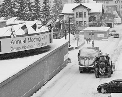 2017年达沃斯论坛在即,图为工人们正在清扫论坛会场附近的积雪。刘军摄/光明图片