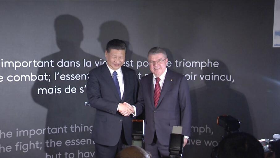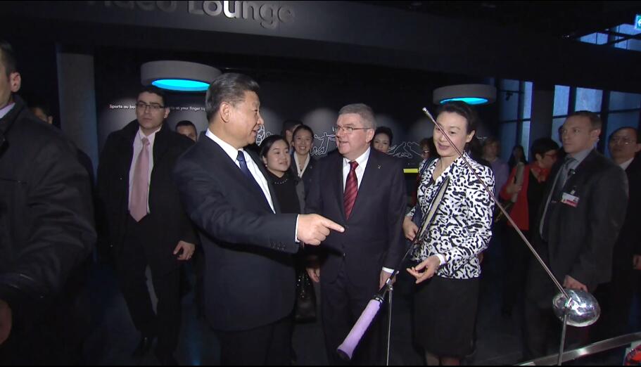 习近平和彭丽媛在巴赫主席夫妇陪同下,参观国际奥林匹克博物馆