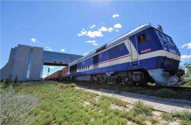 2016年8月27日,一列中欧班列货运列车驶出二连浩特国门。新华社记者 连振 摄