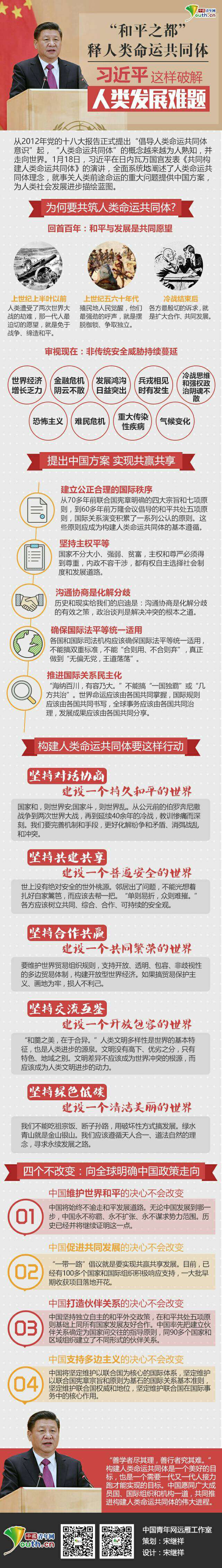 中国青年网北京1月20日电(记者 宋继祥) 从2012年党的十八大报告正式提出“倡导人类命运共同体意识”起,“人类命运共同体”的概念越来越为人熟知,并走向世界。1月18日,习近平在日内瓦万国宫发表《共同构建人类命运共同体》的演讲,全面系统地阐述了人类命运共同体理念,就事关人类前途命运的重大问题提供中国方案,为人类社会发展进步描绘蓝图。