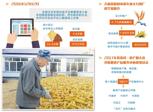 绥化市是全国产粮大市,2016年预计玉米产量940万吨左右、商品量800万吨以上,粮食销售压力较大。绥化市副市长李福军告诉记者,该市将绥化地区一定规模的种粮大户、农业合作社直接吸收为国家粮食交易中心绥化专场会员,农户可利用自有粮库或者租仓,将自有粮食烘干整理后在网上挂单销售;也可以将粮食交到地方粮食部门指定的粮食交收库,委托其开展代烘代储代销,将烘干后同等质量粮食标的集并后上网销售。“这不仅将有效缓解我市农民玉米销售压力,而且也为国有粮库开拓市场赢得生存空间创造了条件。”李福军说。
