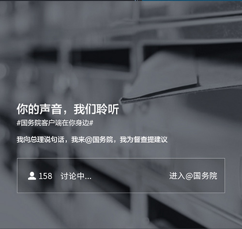 民之所望,施政所向。2016年10月,国务院客户端在全国发起了“见证放权 我来@国务院”活动。活动覆盖全国31个省市区、472个地市州、2838个区县,深入到了4206个政务服务大厅,11902个办事服务点。从飘雪的黑龙江漠河到温暖的海南三亚;从北京的胡同到上海的写字楼,从常年在海上颠簸的老船员到刚送货回家的火车司机;数万个地方的人通过手机@国务院。数万人的声音,可以被国务院听见。