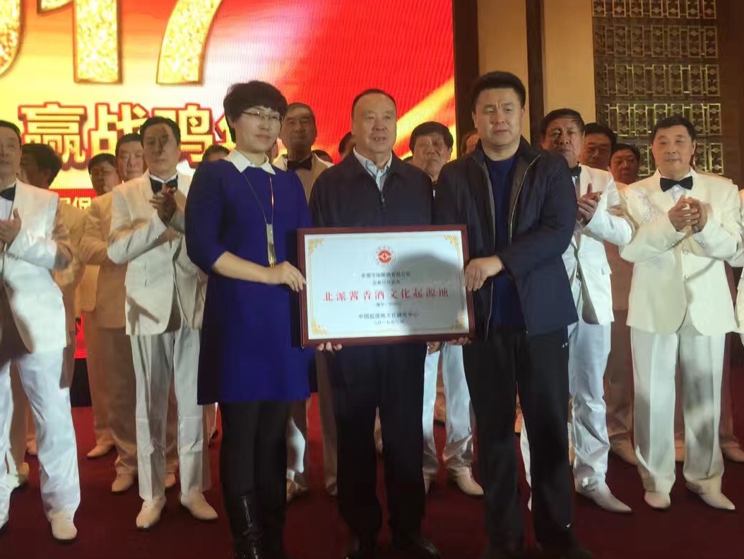 第十一届全国政协副主席、中国西部研究与发展促进会会长白立忱在新春联谊会上为北派酱香酒文化起源地颁发认证牌匾