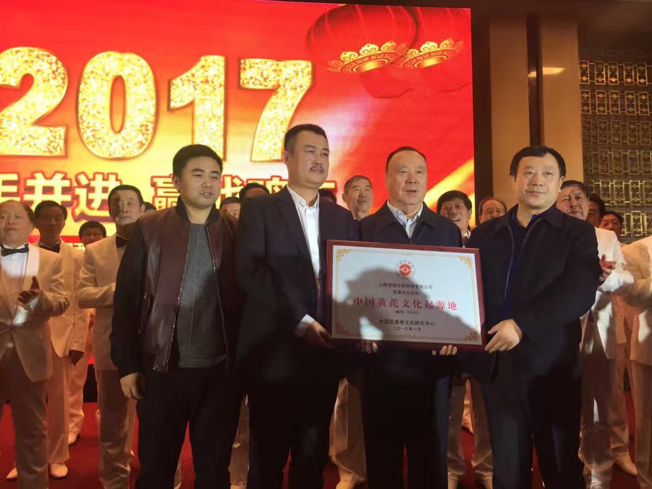第十一届全国政协副主席、中国西部研究与发展促进会会长白立忱在新春联谊会上为中国黄芪文化起源地颁发认证牌匾