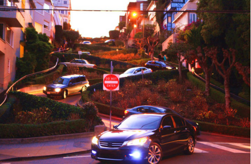 美国旧金山九曲花街蜿蜒的道路。新华网巩阳 摄