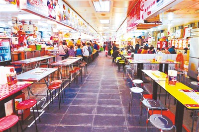 图为陆客来台人数锐减,原本热闹的台北士林夜市,用餐时间不少店家空荡荡。